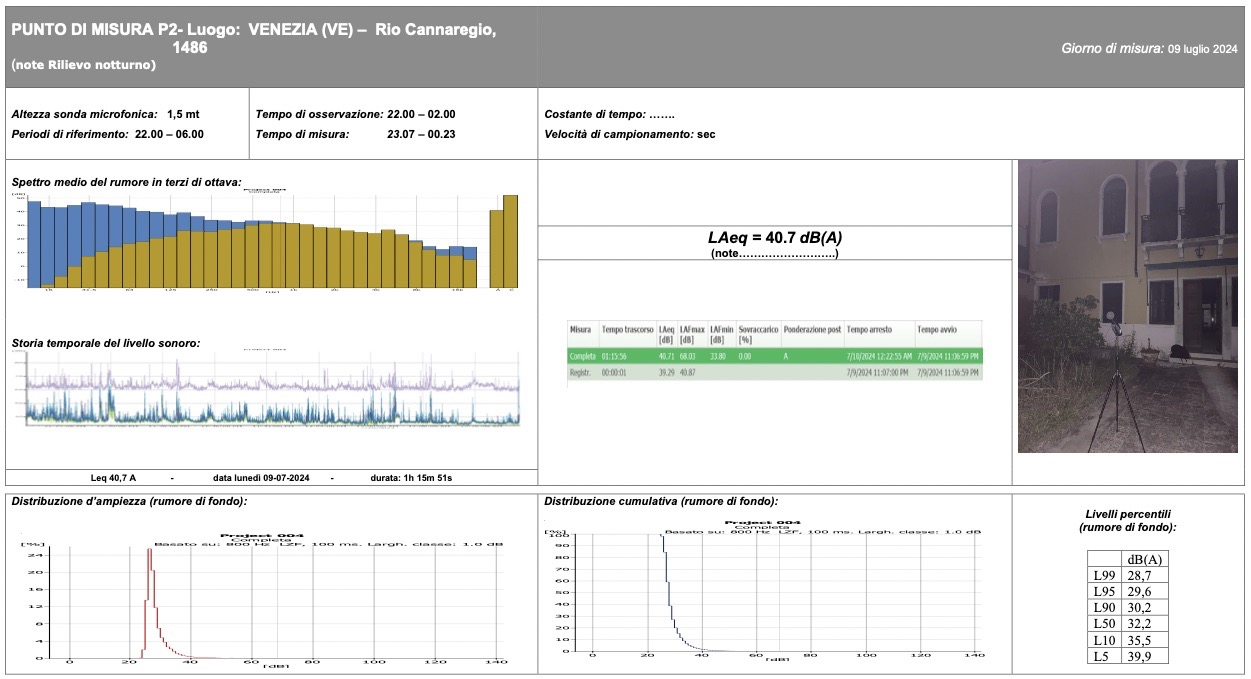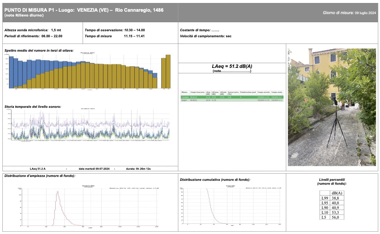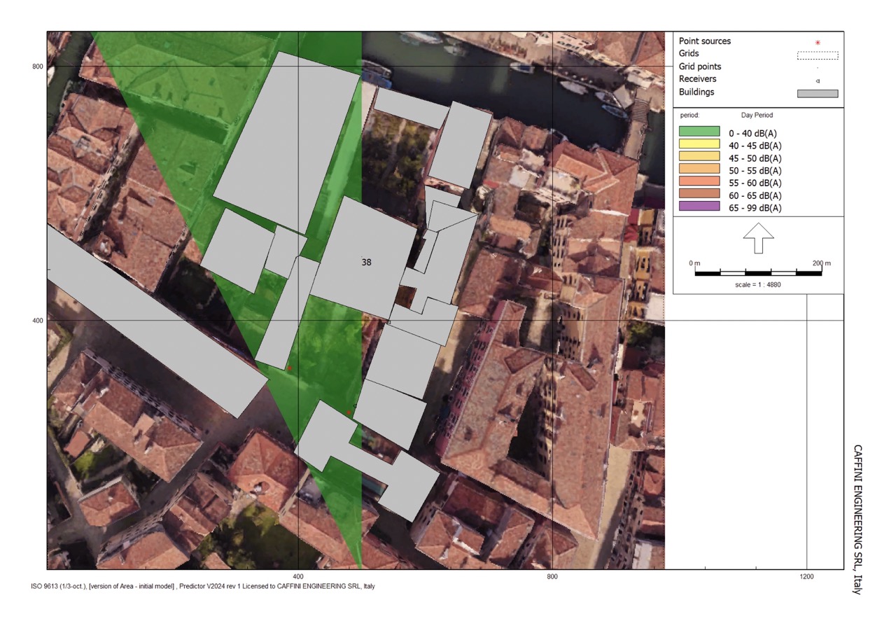 Valutazione previsionale di impatto acustico con campionamenti e modellizzazione acustica a servizio della ristrutturazione dell’edificio storico destinato a Hotel a Venezia, Cannaregio 1486, zona quartiere ebraico.