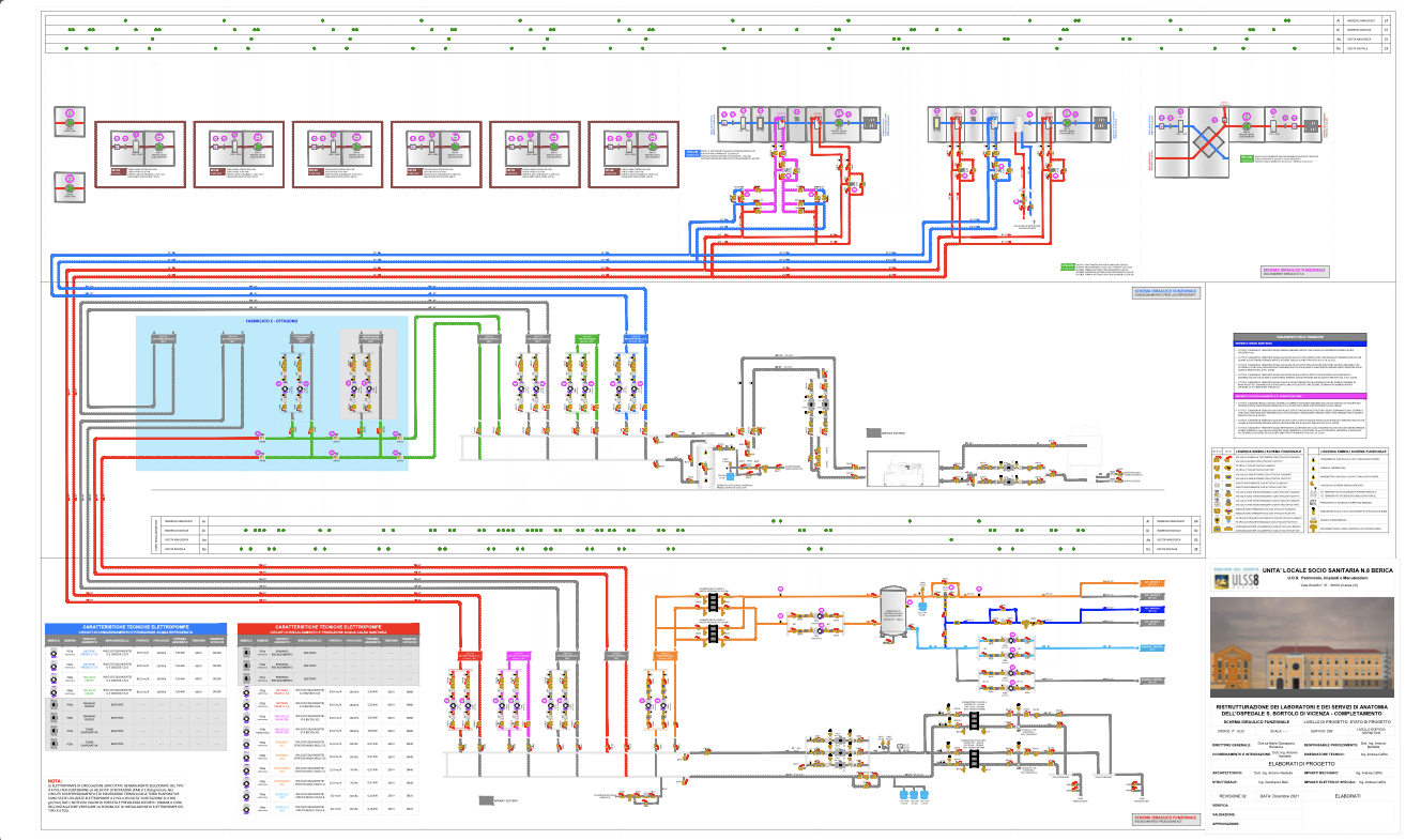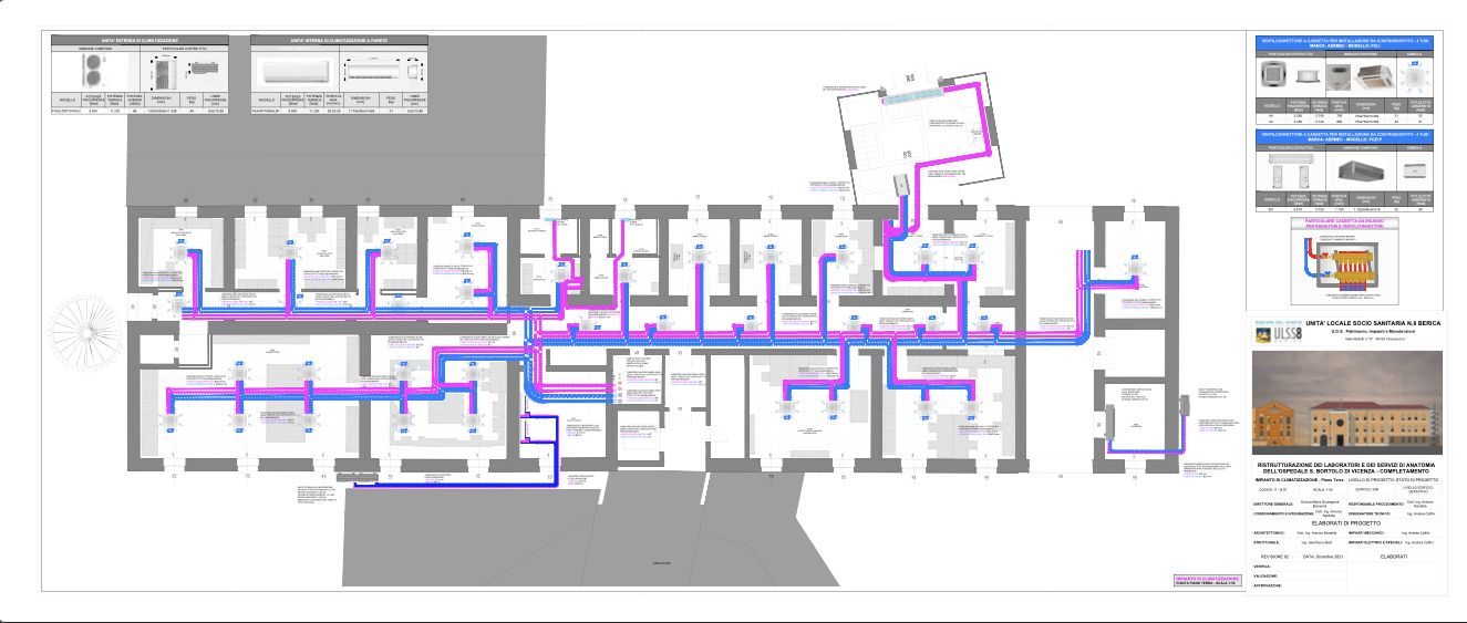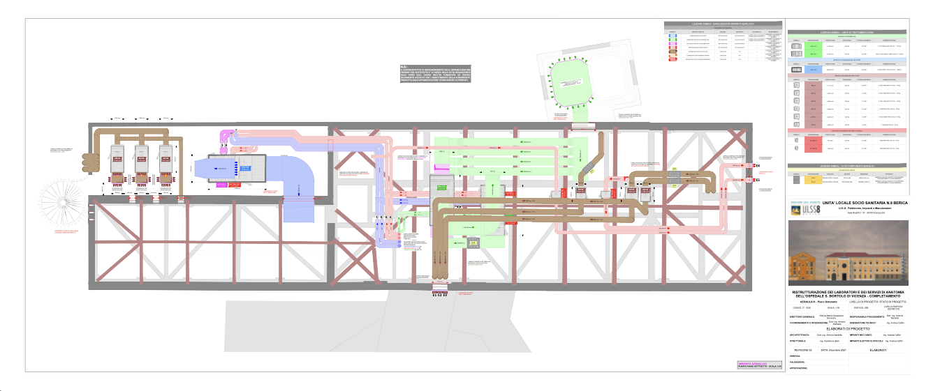 Progettazione preliminare, definitiva ed esecutiva, direzione lavori ed assistenza al collaudo dei lavori relativi agli impianti tecnologici di climatizzazione estiva e invernale, idrico sanitari e scarichi, antincendio, elettrici e speciali per l’Edificio B adibito a Laboratori dell’Ospedale San Bortolo a Vicenza
